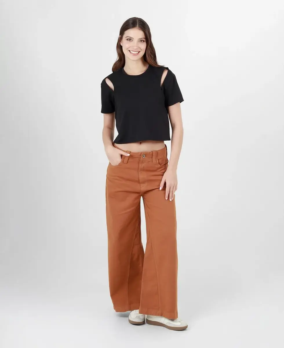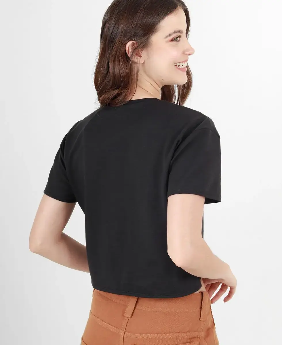 CAMISETA CROP MANGA CORTA ESCOTE REDONDO CON ABERTURAS Y CRUCE EN DELANTERO