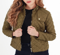chaqueta enguatada ultra ligth cuello alto con detalle solapa no funcional en hombro, bolsillos delanteros con cremallera y cierre frontal con cremallera separable.