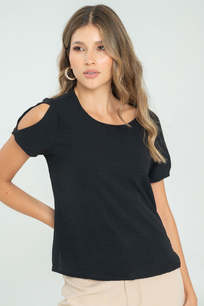Es una blusa con una pequeña abertura en los laterales y en la parte de atrás, lo que le da un toque elegante y ligero. Este diseño permite mayor ventilación y comodidad, además de agregar un detalle sutil pero moderno a la prenda. Perfecta para un estilo casual o semiformal.
